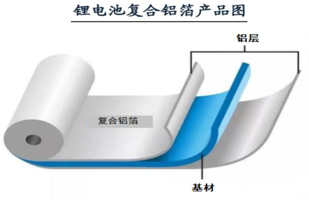 复合铝箔是一种新型的电池正极集流体材料,具有复合夹层结构,中间层是高分子PET材料其两面采用真空蒸镀的方式,分别镀上一层金属铝导电层形成复合铝集流体。